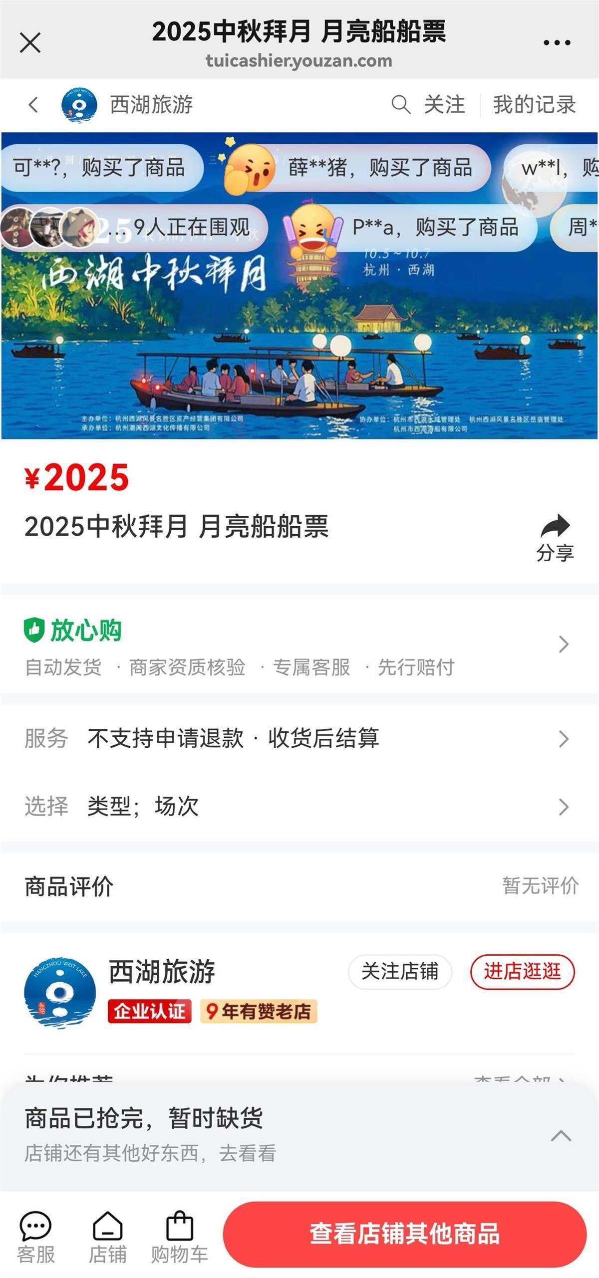 “月亮船”票已售罄(截图自西湖旅游购票网站)